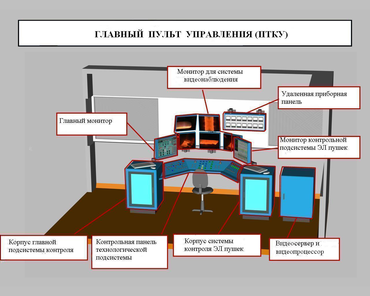 Данные видеонаблюдения транслируются на 5 мониторов главного пульта управления в режиме реального времени, что позволяет плавильщику оперативно управлять процессом плавки.